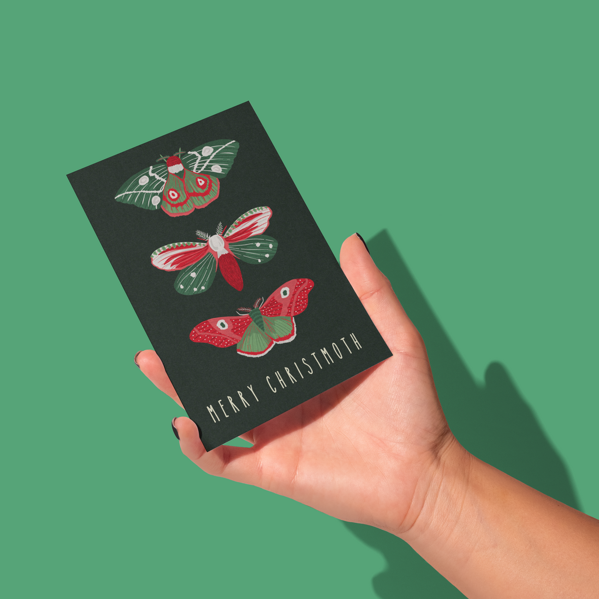 This month's Greeting Card Spotlight shines on the 'Christmas Moth' card! Perfect for anyone who loves to receive a unique Christmas pun! There are so many other ways to incorporate a little fun into your everyday life this holiday season. Use this card to let a special someone know that you are thinking about them. In the day of the digital age, sitting down and hand writing a note to someone can mean a lot. Receiving mail as an adult usually isn't fun, but this card is guaranteed to brighten someone's day!